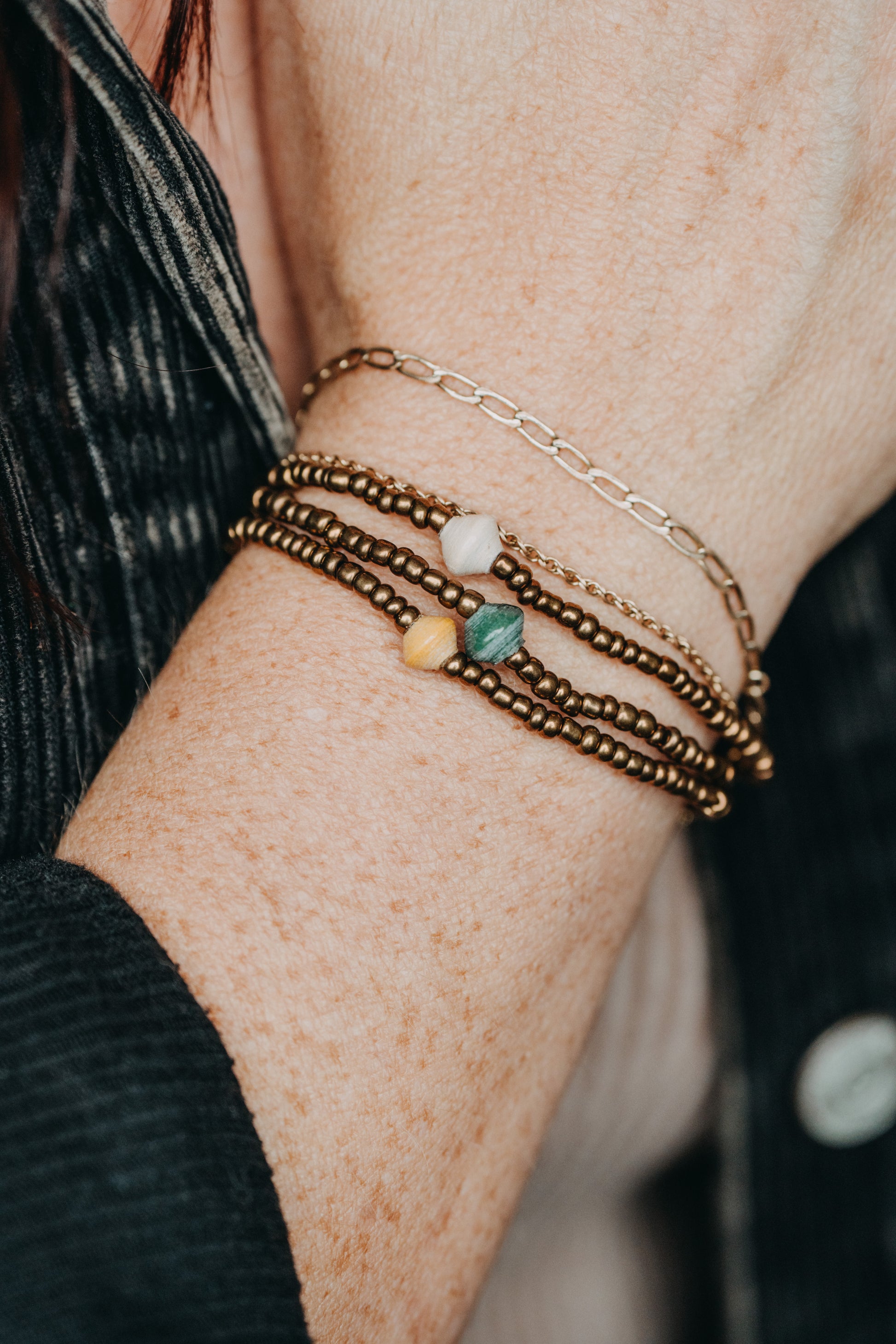 Be sure to pair the Carolyn Small bracelet with our earrings and necklaces. This style is best layered with other pieces!