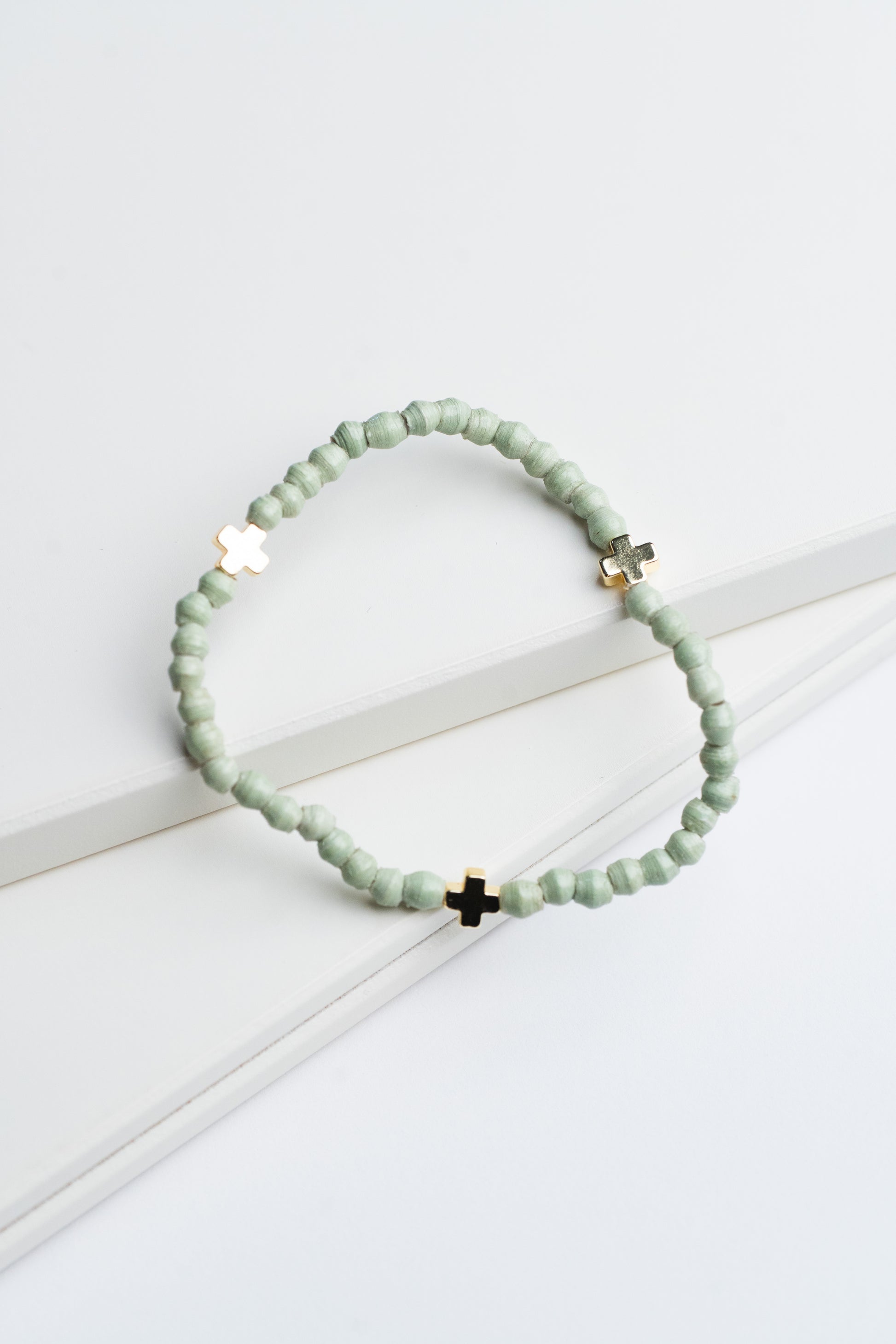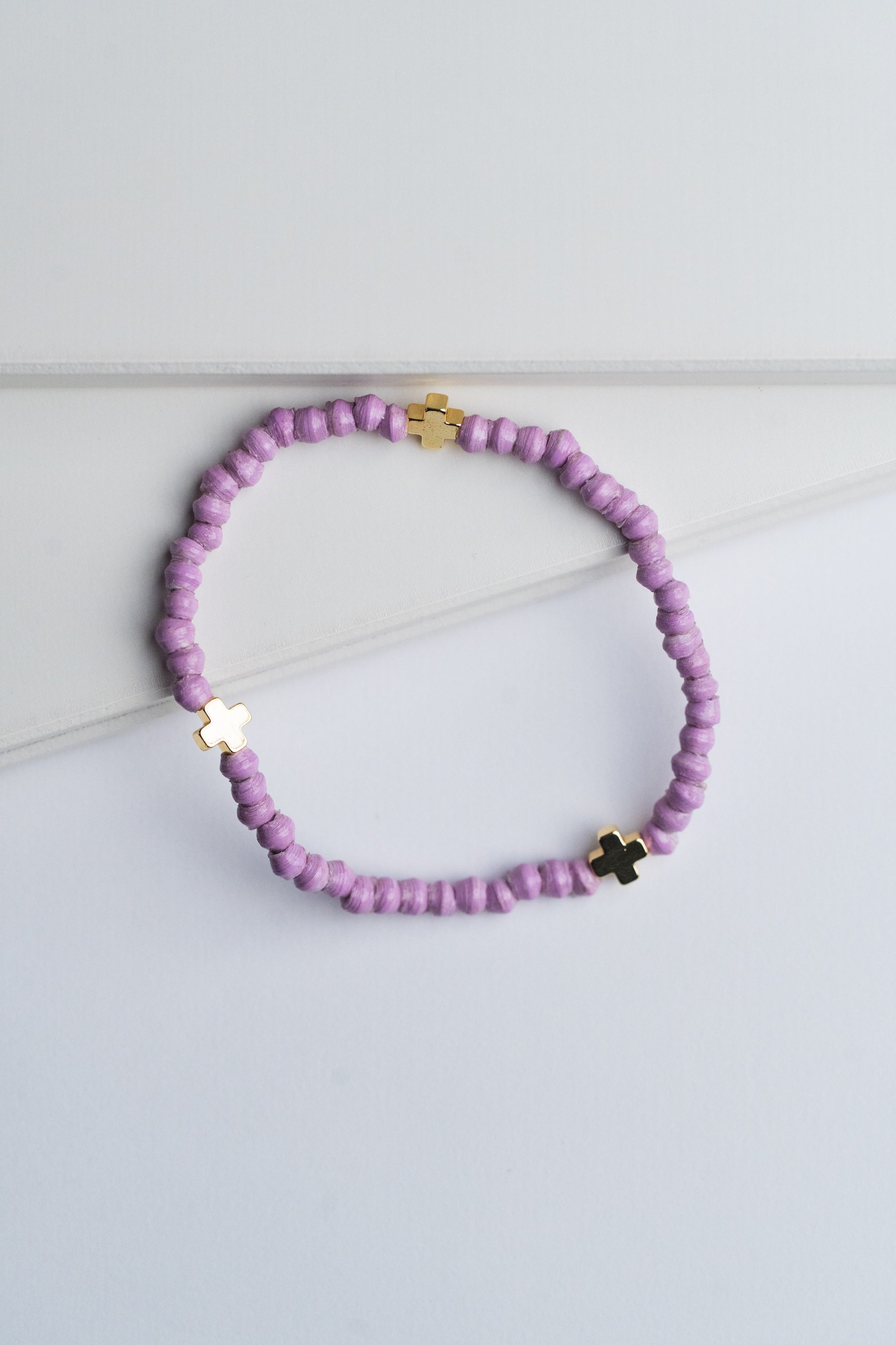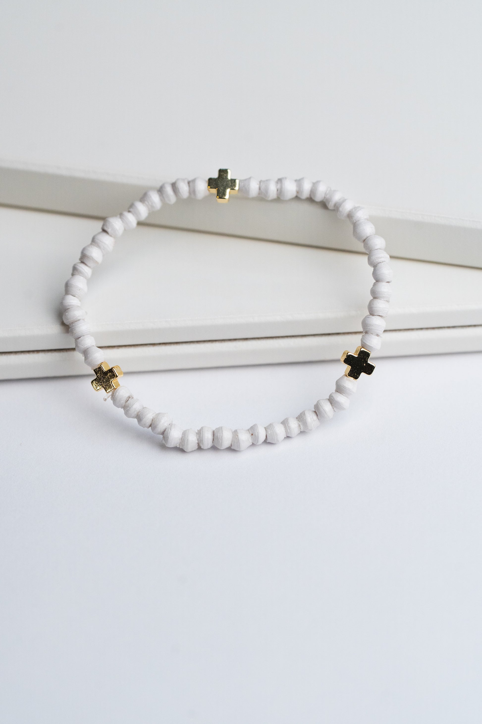 Add a touch of charm and faith to your wrist with the Divine Bracelet. Featuring three delicate gold crosses separated by tiny paper beads, this trendy accessory brings a playful yet meaningful vibe to any outfit. Perfect for those who love stylish details with a hint of symbolism.